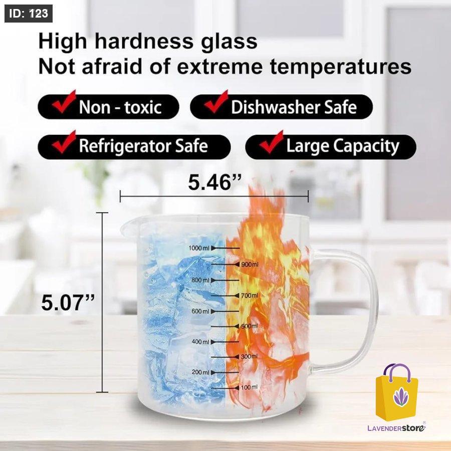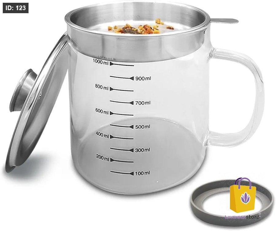 كوب قياس زجاجي حراري مع مصفاة وغطاء **شرح المنتج:** 1️⃣ زجاج عالي الصلابة يتحمل الحرارة الشديدة. 2️⃣ سعة كبيرة مدرجة بدقة حتى 1000 مل. 3️⃣ مصفاة ستانلس ستيل لتصفية مثالية. 4️⃣ غطاء محكم يحمي من الغبار. 5️⃣ مقبض مريح وآمن أثناء الاستخدام. 6️⃣ مناسب للسوائل الساخنة والباردة. 7️⃣ آمن للغسالة والثلاجة. 8️⃣ قاعدة سيليكون مانعة للانزلاق. 9️⃣ تصميم شفاف أنيق وعصري. 🔟 المقاس: عرض 13.9 سم، ارتفاع 12.9 سم.