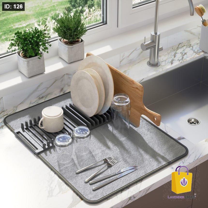 # 🍽️ **حصيرة تجفيف الصحون الذكية مع حامل مدمج**