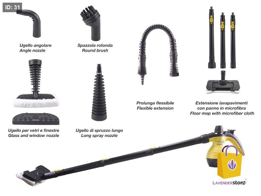 4. يحتوي على ملحقات متعددة لتناسب تنظيف الأرضيات، النوافذ، الأقمشة والزوايا الضيقة.