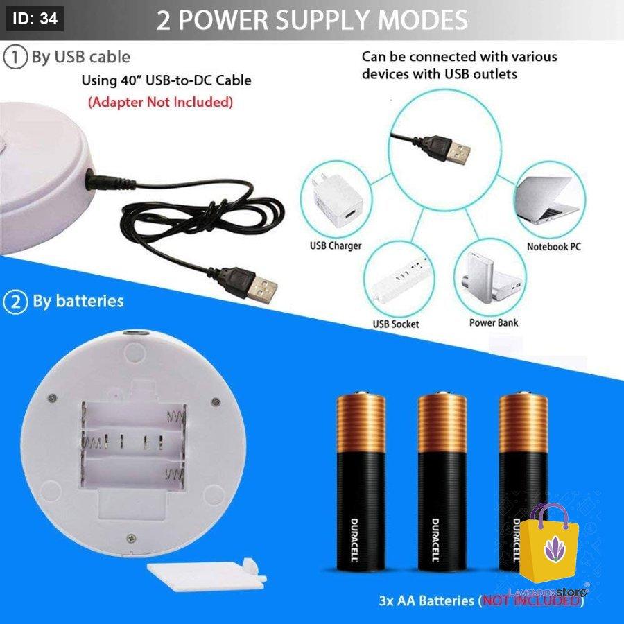 يمكن تشغيله عبر كابل USB أو 3 بطاريات AA.