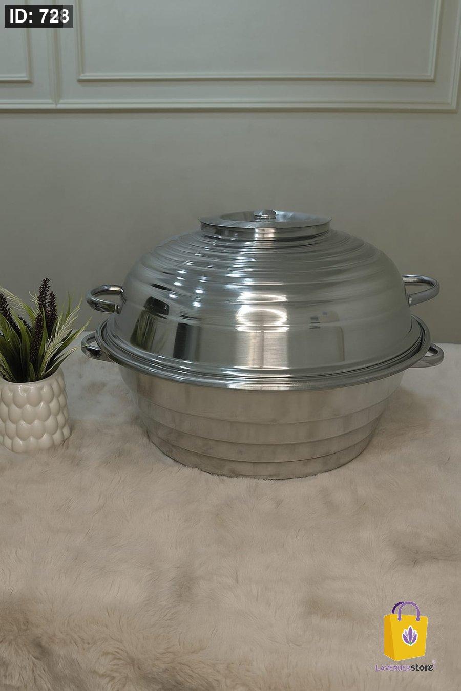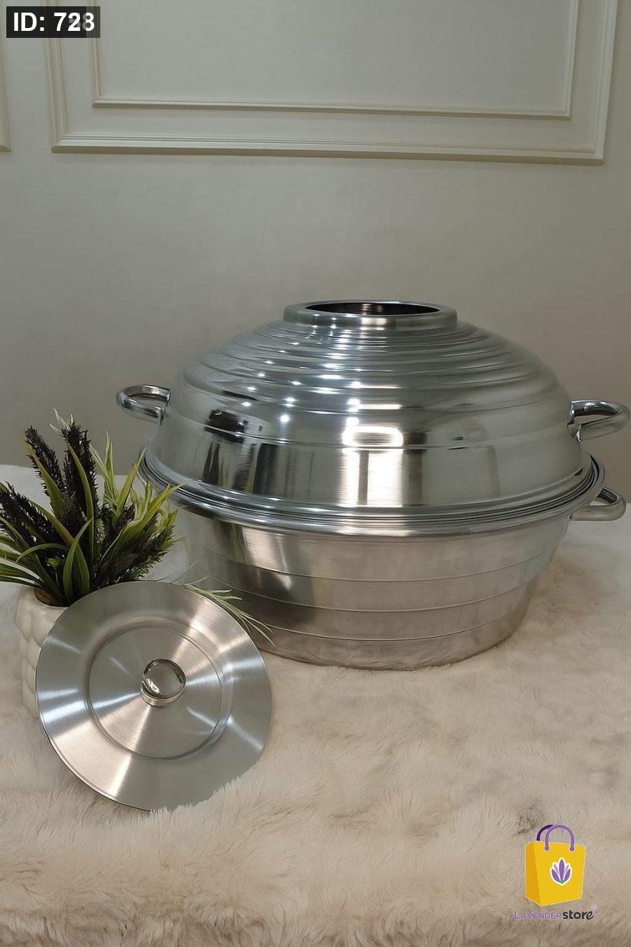 * 🔥 **تعمل على الغاز مباشرة** من خلال فتحة سفلية توزّع الحرارة بالتساوي داخل الحلة.